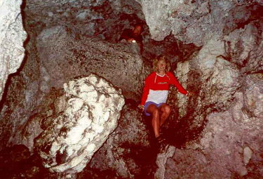 The next morning, Gary wanted to be on the water by 8:00 AM so we all packed our kayaks and were underway. The paddle to Nahiku was slow as we examined all the caves that we could. The ocean was very busy, crashing into the cliffs. One cave was hidden in a cove that looked rough, but once we approached the entrance, it became clear that the deep and large cave was navigable. The rough Opuhano point revealed the large and calm Honolulunui bay at Nahiku, a broad and calm body of water. The next campsite was supposed to be Waiohue bay, but the 4-ft. break 25 yds off shore killed that idea. Gary had landed in a small bay earlier and wanted everyone to swim to shore to see a big pool close to shore. Maghna and I were more concerned about the next campsite so we paddled on. Along the way was a good sized pod of dolphin, and Maghna couldn't resist jumping in to swim with them. After leaving the scouting group in the relative calm Honolulunui, I went ahead to look for Wailua Iki. Papiha point was bumpy and it looked like the next campsite was way off. Paddling past Makoloaka Island, I viewed the lee of the point and it looked calm! I radioed to Maghna that the landing was easy and soon they all joined me in the bay. Most people wanted to camp at the river bed on the right, while Francis, Wayne, Ellen, Doug T. and myself decided to camp on the steep rocky area on the left affectionately described by Maghna as the "grungy" side. The rain began to fall right on schedule at 6:00 PM and did not stop until about 8:00 PM. The next morning, a group of us returned to Waiohue Bay, now